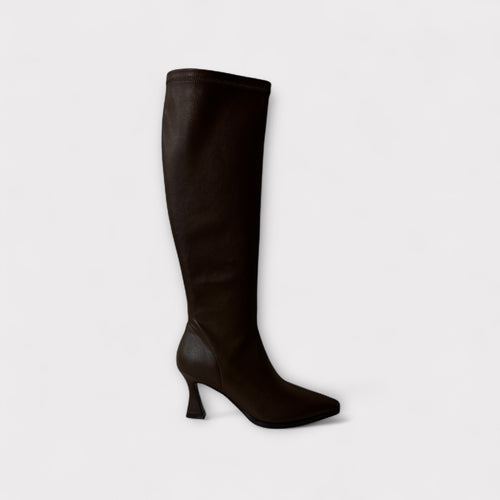 Miss Elastic Brown Faux Leather Knee High Boot