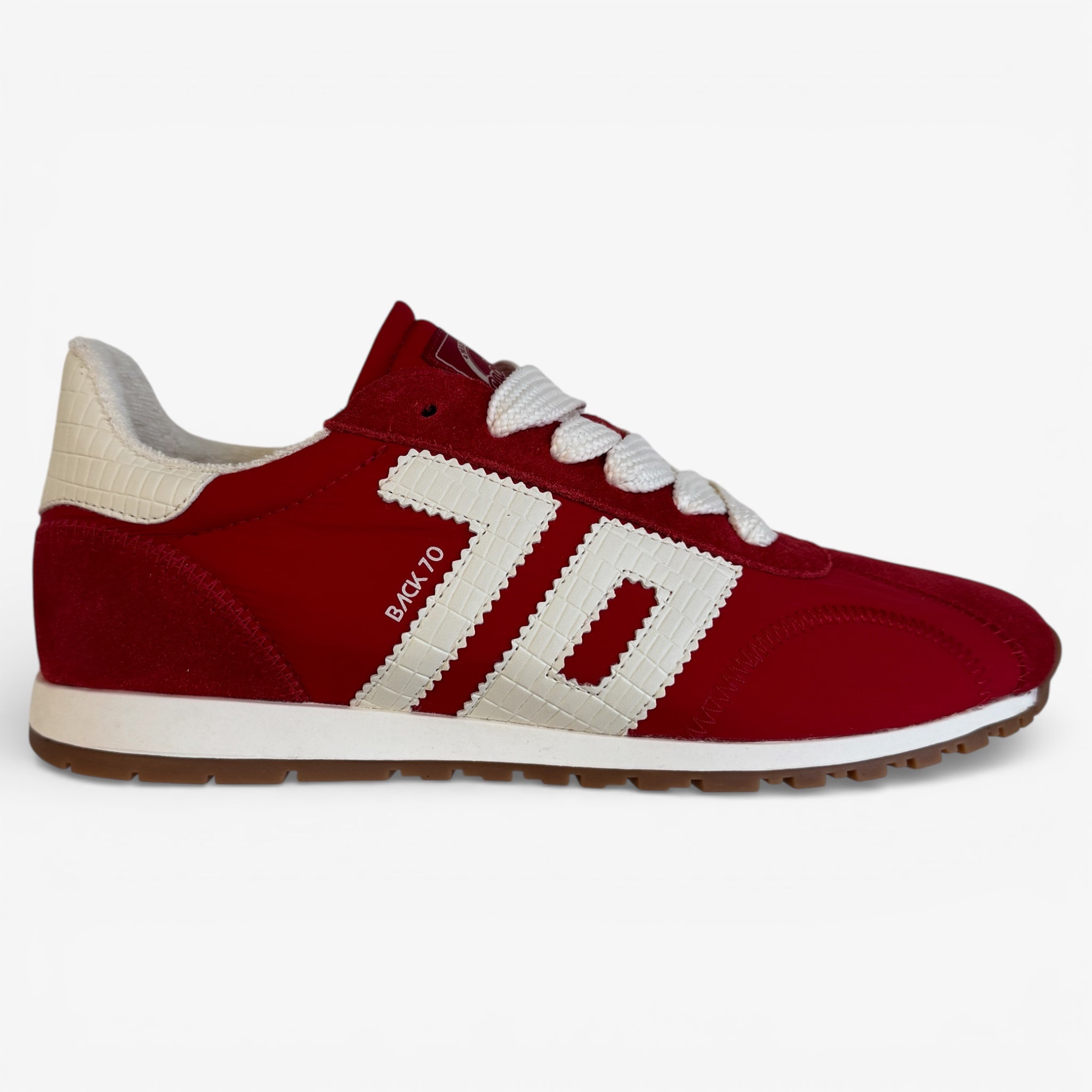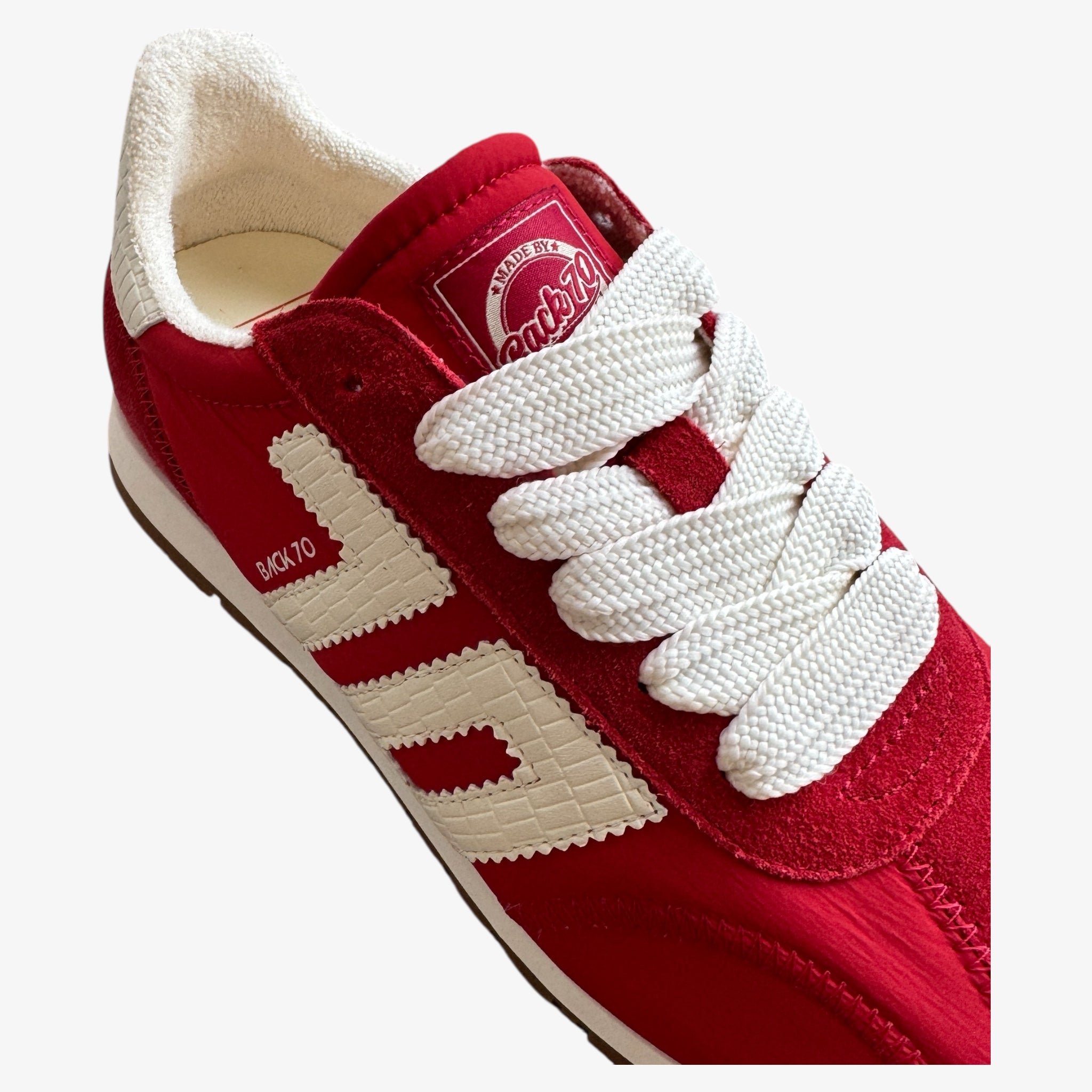 Red suede and nylon trainer in the classic retro style from Back 70.