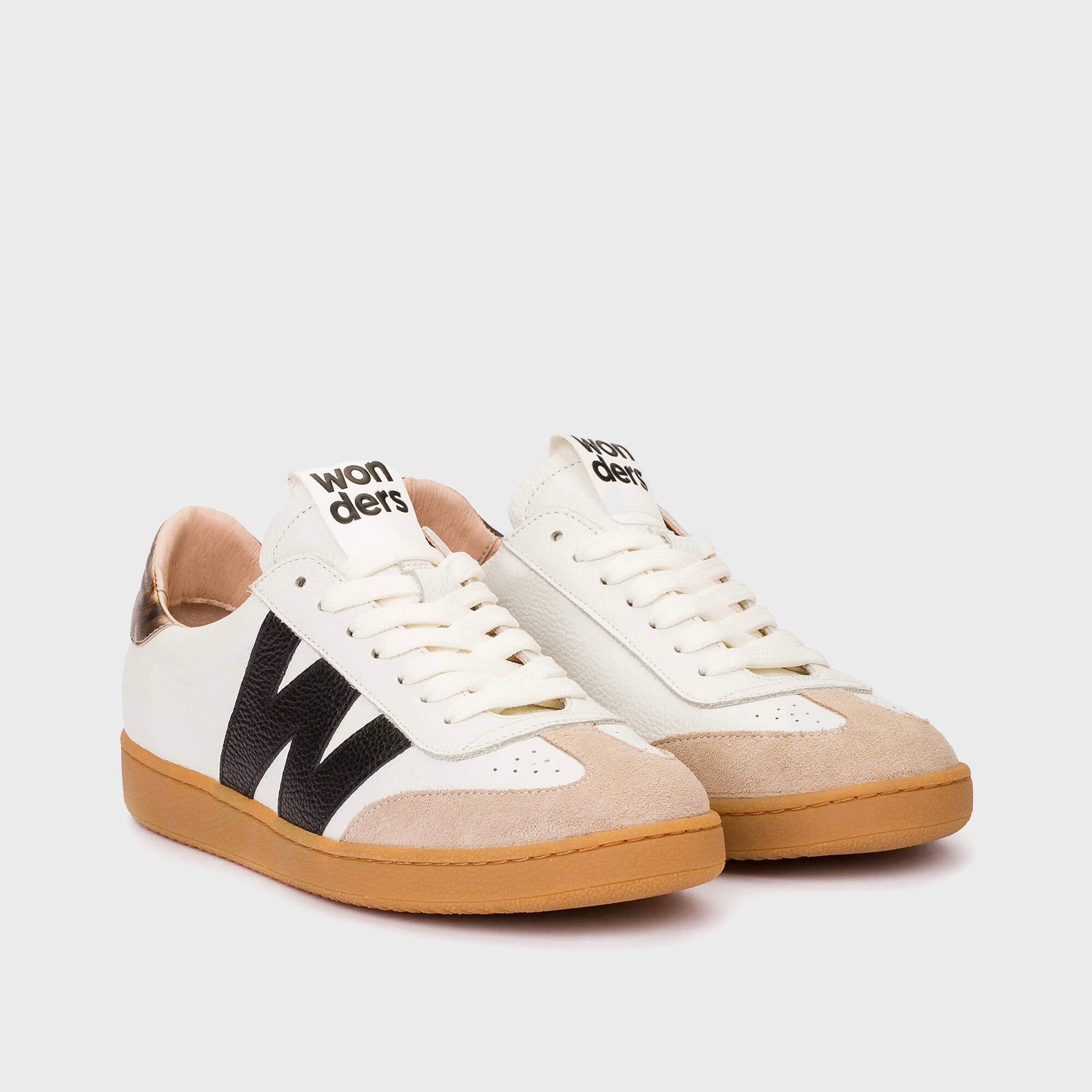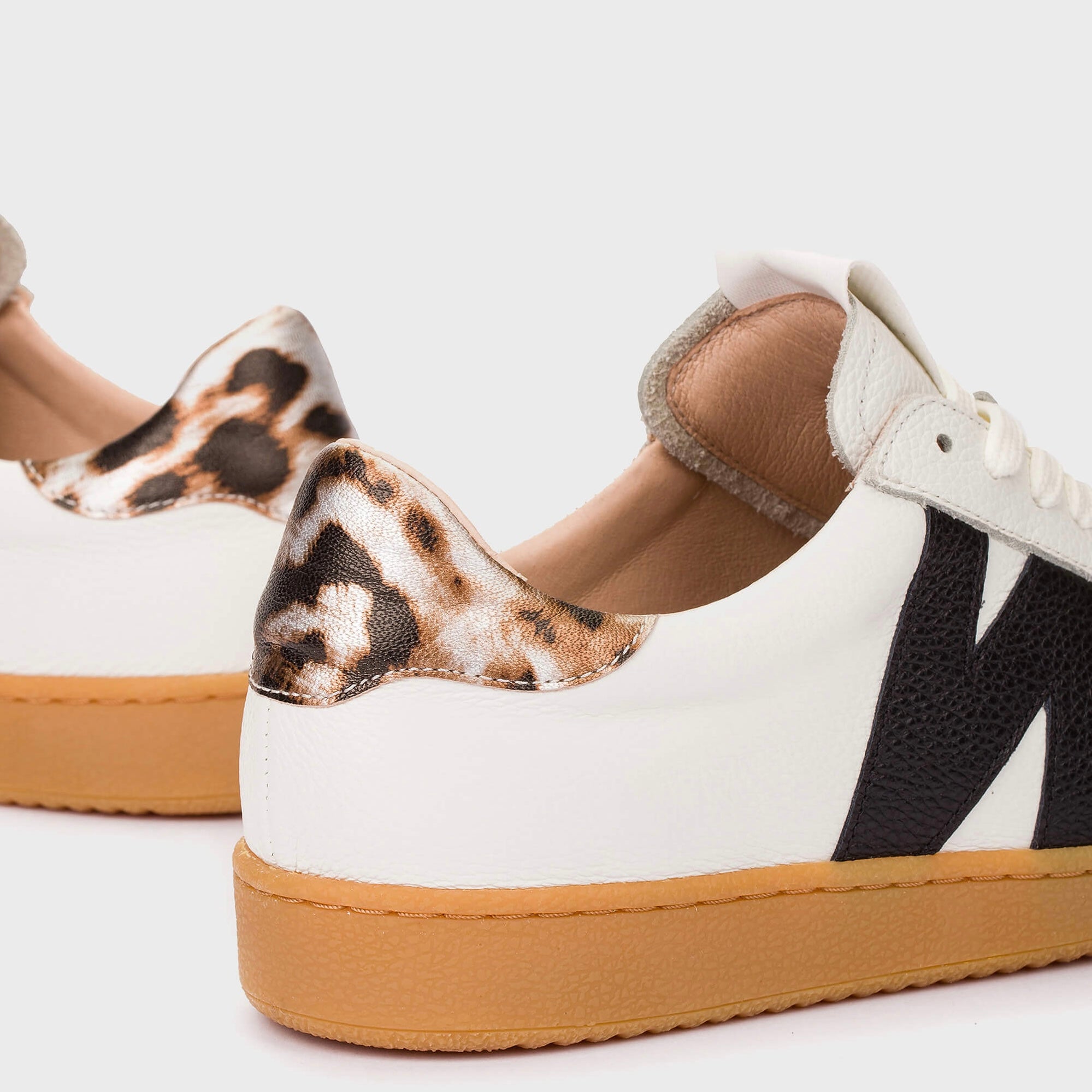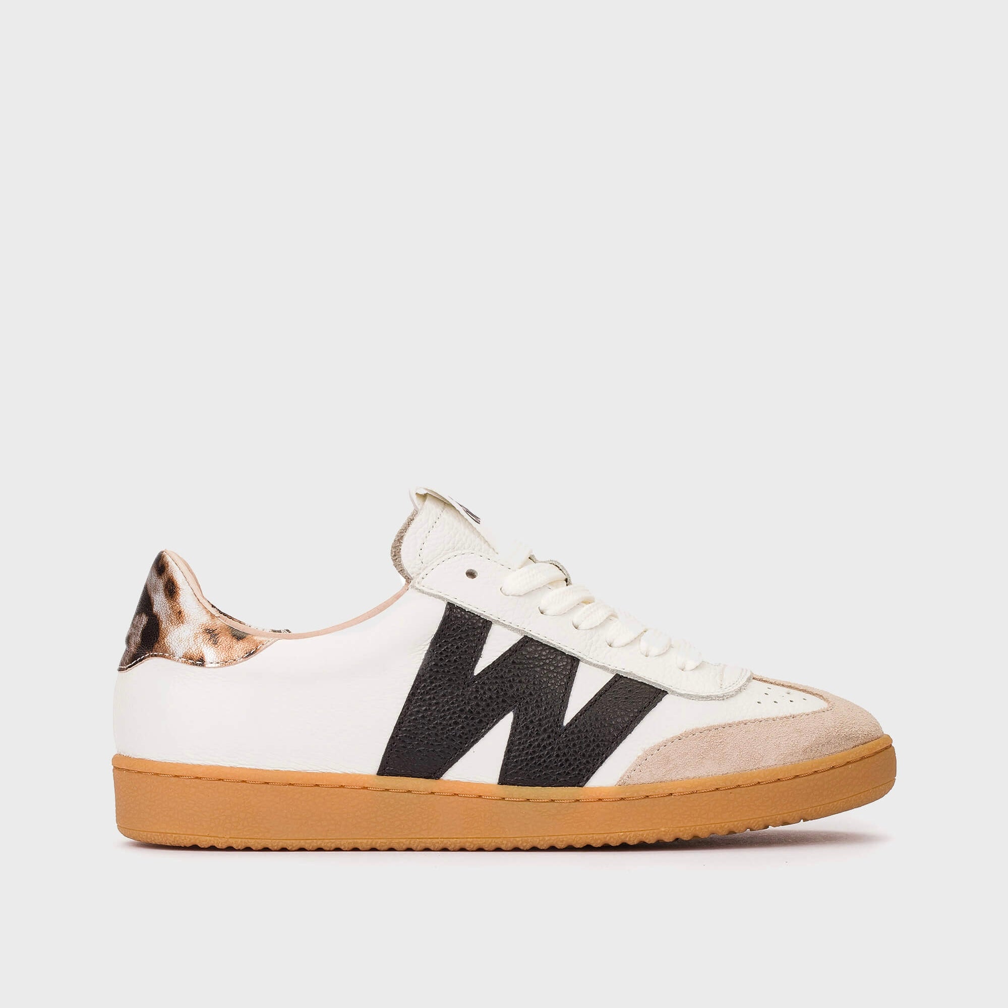 Off white retro style leather trainer. Black W logo on the side with print detail at the heel.