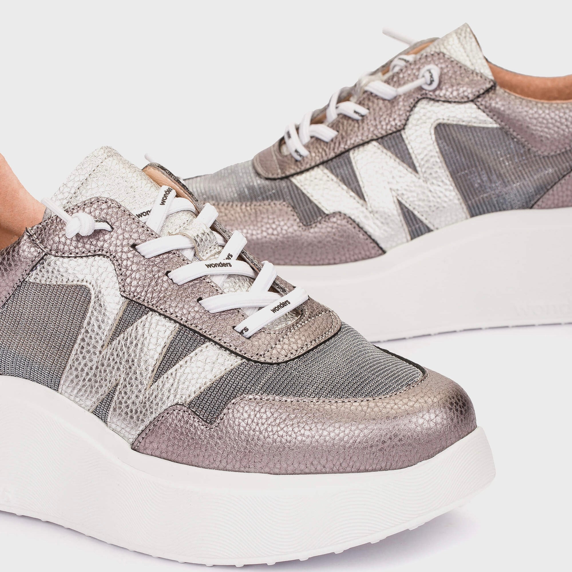 Wonders Roma 40 Silver Chunky Trainer