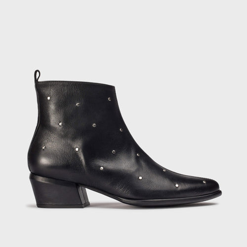 Wonders Flexfit 11 Black Leather Ankle Boot - Kitten Heel